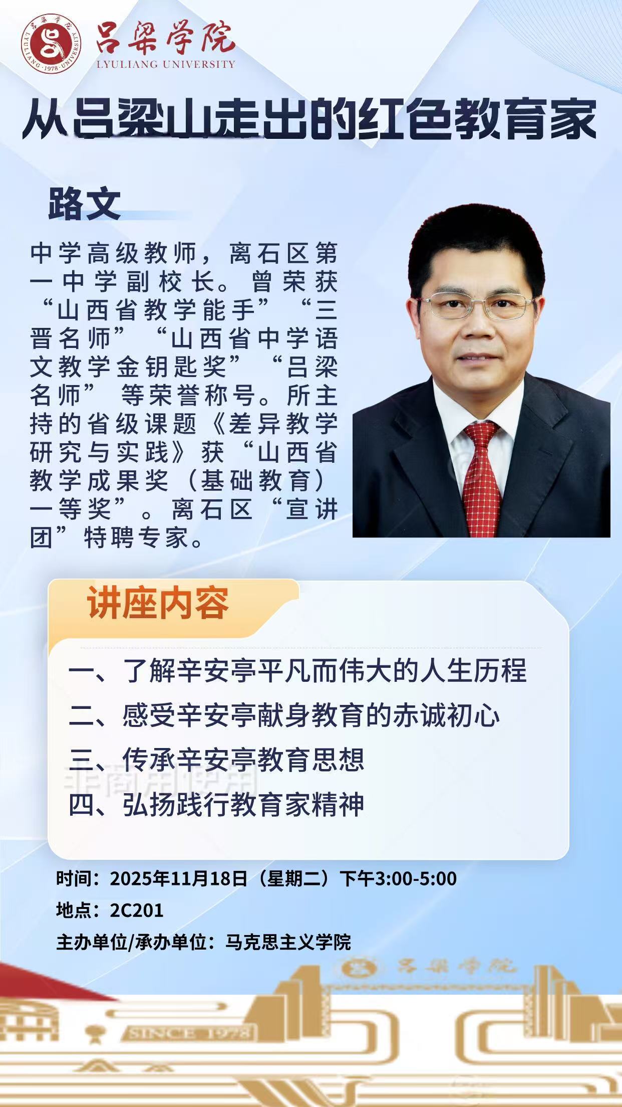讲座通知:从吕梁山走出的红色教育家
