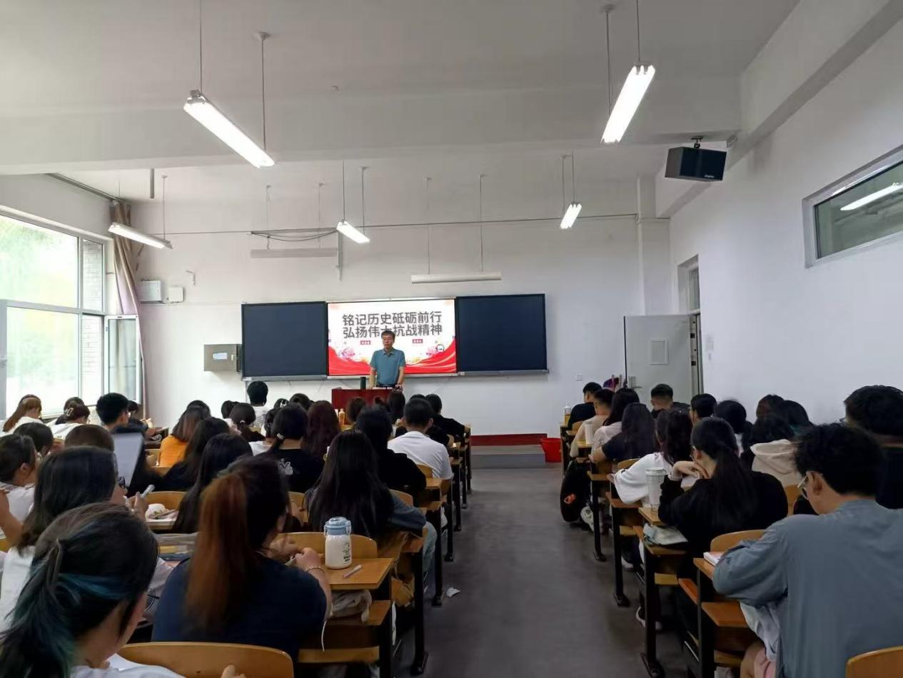 赵跃先教授从“勿忘国耻:悲惨的历史不能重演;抗战精神:永不褪色的民族之魂;学习之思:从抗战精神汲取成长力量;知行合一:在校园生活中践行抗战精神;开创未来:抗战精神照亮复兴征程”等五个方面,给大家做了讲述。